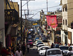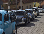 Com terços nas mãos e olhos nos possantes, os peregrinos tiveram seu cortejo interrompido pela "fusqueata" --que acontecia simultaneamente à missa na praça principal de Cunha.