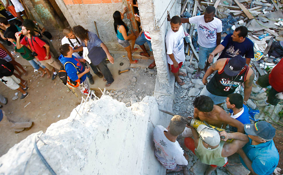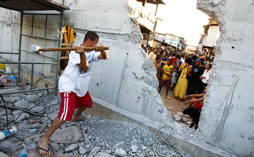 Moradores derrubam muro para rota de fuga em caso de incêndio na favela do moinho
