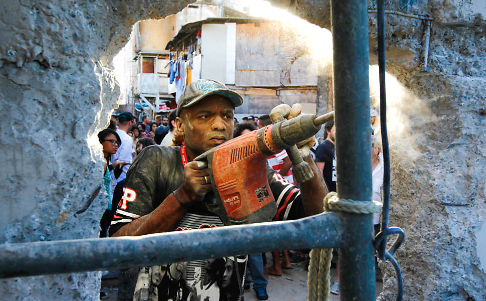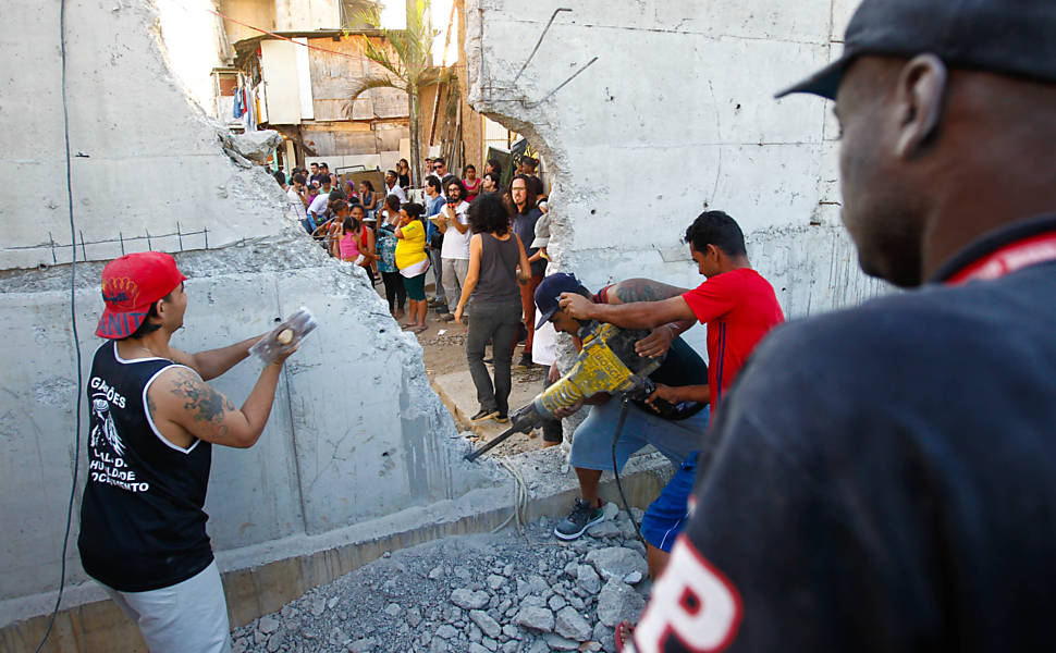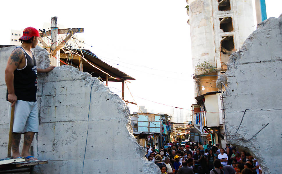 Moradores da favela do Moinho, que fica sob o viaduto Orlando Murgel, no centro de São Paulo, começaram a derrubar neste domingo (4) partes de um muro de contenção construído ao redor da comunidade. A derrubada da estrutura é parte de um plano para uma rota de fuga no local para prevenção no caso de um novo incêndio.