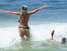 8 de fevereiro - Banhista aproveita o forte calor no Rio para dar um mergulho da praia do Pepe, na da Barra da Tijuca