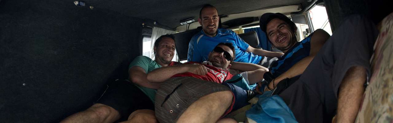 Assustados com o preço das passagens aéreas e da hospedagem no Brasil durante a Copa, cinco amigos argentinos decidiram aproveitar o fato de o mundial ser disputado no vizinho e eterno rival Brasil e colocaram o pé, no caso, a van na estrada. Ricardo Cordoba, 32 anos, Estevan Picca, 31, Frederico Gutierrez, 29, Diego Sanchez, 32 e Franco Vaudagna, 31, começaram a jornada no último sábado e só voltam para a casa depois do dia 25 de junho, final da primeira fase para a Argentina.